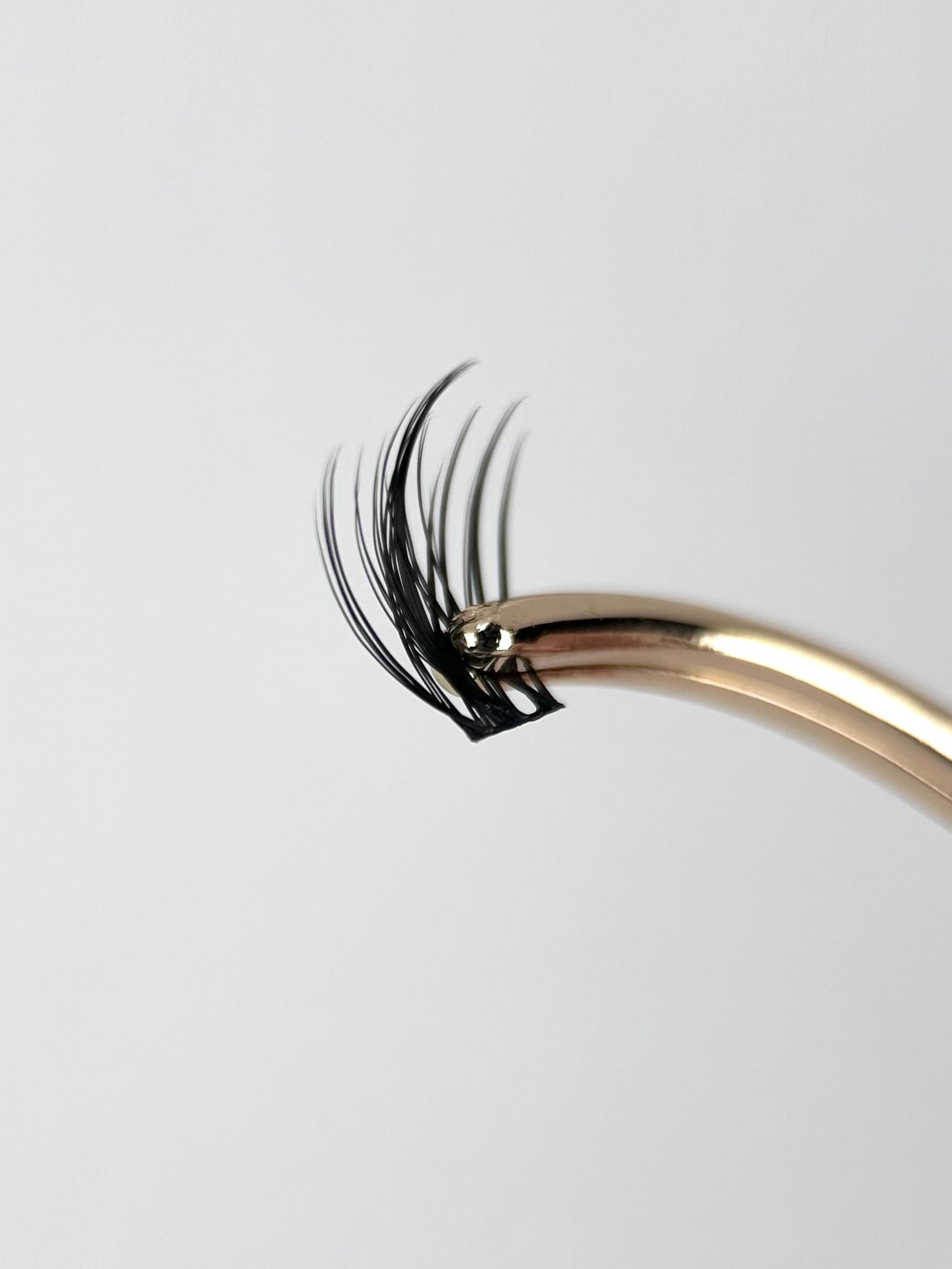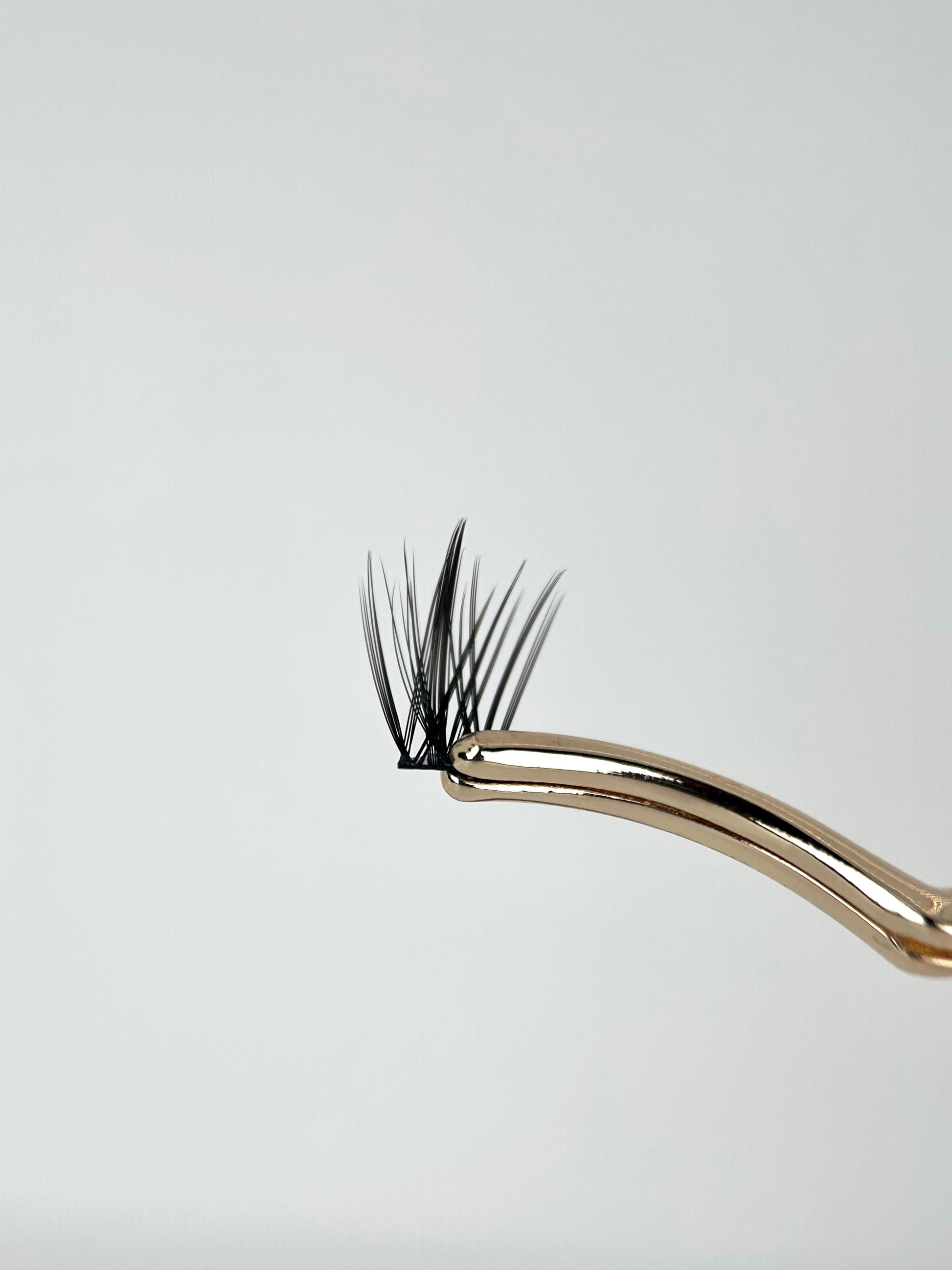 2.Залепи снопчетата с пинсетата под естествените ти мигли и над мигления ръб.